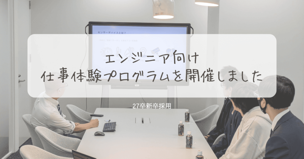 こんにちは。採用担当の藤橋です😊 弊社では先週の金曜日に、エンジニア志望の学生の皆さんを対象に1day仕事体験プログラムを実施しました! 今回は「センサーデバイス×モバイルアプリ」をテーマに、センサーデバイスから取得した […]