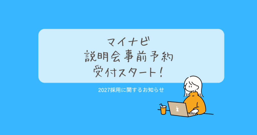 みなさん、こんにちは。採用担当の藤橋です! 2027卒採用についてお知らせです。 本日2月12日( 木)より、マイナビからのオンライン説明会予約の事前受付をスタートいたしました!!😆 また説明会の予約開始と合わせて、募集 […]